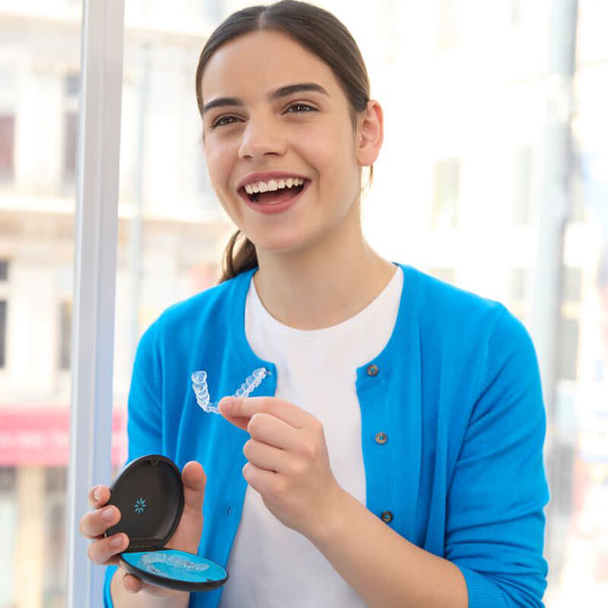 Los alineadores transparentes Invisalign están hechos de material SmartTrack, por lo que son más cómodos y fáciles de colocar y retirar.6